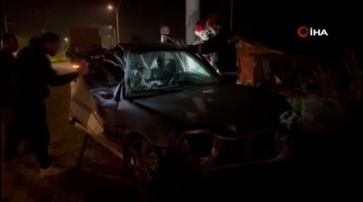 Bursa'da kontrolden çıkan otomobil 35 metre boyunca sürüklenerek elektrik direğine çarptı. Kazada sürücünün ağır yaralandığı belirtildi.