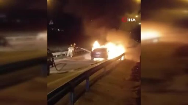 Bursa'nın Nilüfer ilçesinde seyir halindeyken alev alan otomobil kullanılamaz hale geldi.