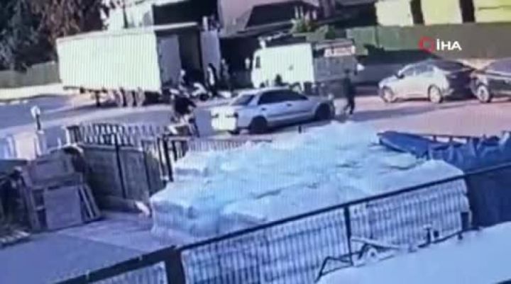Bursa'nın İnegöl ilçesinde otomobil ile çarpışan motosikletteki 2 kişi yaralandı. Kaza anı bir iş yerinin güvenlik kamerasına saniye saniye yansıdı.