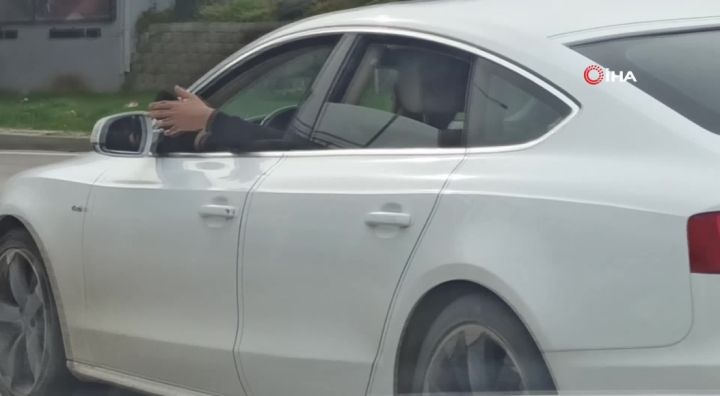 Bursa'da ayağını camdan çıkaran sürücü, tek eliyle tuttuğu direksiyonla trafiği tehlikeye soktu. Onu gören diğer sürücüler ise, 'bu sürüş tekniği için hangi ehliyeti almalı?' sorusunu kendilerine sormadan edemedi.