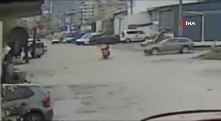 Kaza, merkez Nilüfer ilçesi Küçük Sanayi Sitesi'nde meydana geldi. Edinilen bilgiye göre, bir motosiklet ile otomobil dikkatsizlik sonucu çarpıştı. Kaza sonrası havaya uçan motosikletteki kurye hafif yaralandı. Kaza anı bir iş yerinin güvenlik kamerasına yansıdı.