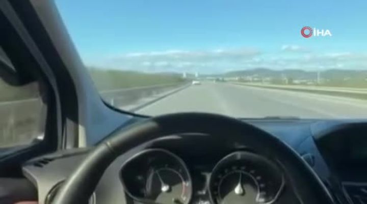Bursa'da otoyolda, otomobiliyle ters yönde ilerleyen sürücü, trafikteki diğer sürücüleri tehlikeye attı. O anlar bir sürücü tarafından cep telefonuyla görüntüledi.