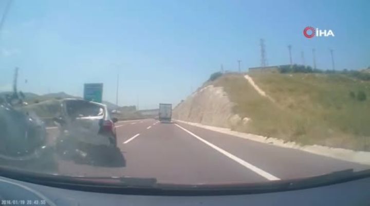 İstanbul-İzmir otoyolu, Orhangazi yakınlarında meydana gelen trafik kazasında yolda makas attığı ileri sürülen bir lüks araç önündeki bir otomobile çarptı. Kazada her iki araçtaki toplam 4 kişi yaralandı. Kaza anı ise yolda seyir halinde olan bir otomobilin araç kamerasına yansıdı.