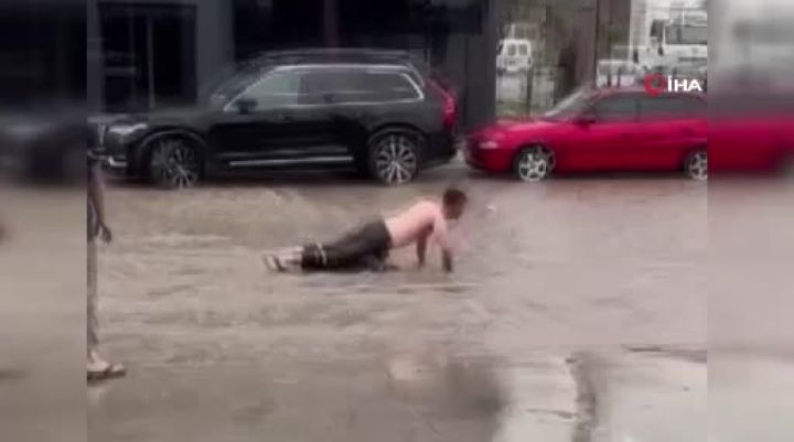 Bursa'nın İnegöl ilçesinde etkili olan sağanak hayatı felç etti. Sokak ve caddeler göle dönerken sosyal medya meraklıları ise sözde balık tutup kulaç attı. Can kaybı yaşanmazken sağanak ve fırtına yüzünden vatandaşlar zor anlar yaşadı.