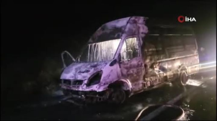 Bursa'da motor kısmından çıkan yangın kargo aracını küle çevirdi.