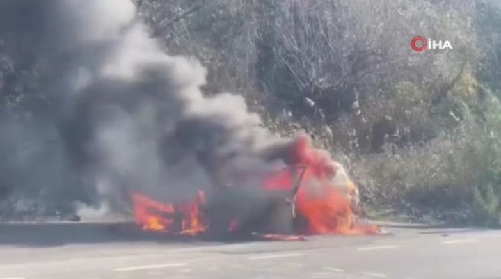 Bursa'nın Mudanya ilçesinde seyir halindeki bir otomobil alev alev yandı. Sürücüsünün son anda kurtulduğu yangın ekipler tarafından söndürüldü.