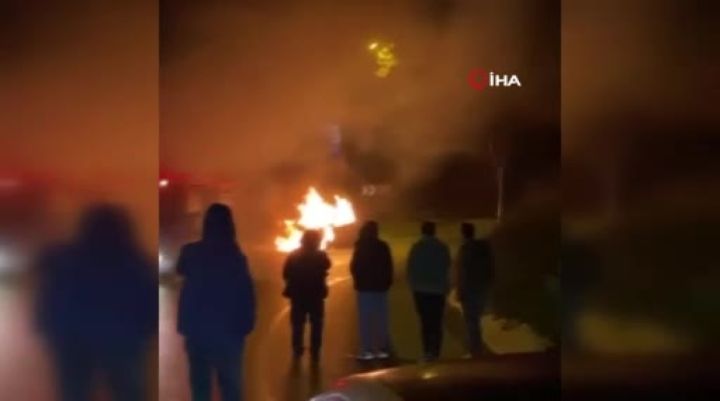 Bursa'da seyir halindeki otomobilden duman çıktığını gören sürücü, aracını emniyet şeridine çekti. Araç kısa süre içerisinde tutuşarak alev topuna döndü.