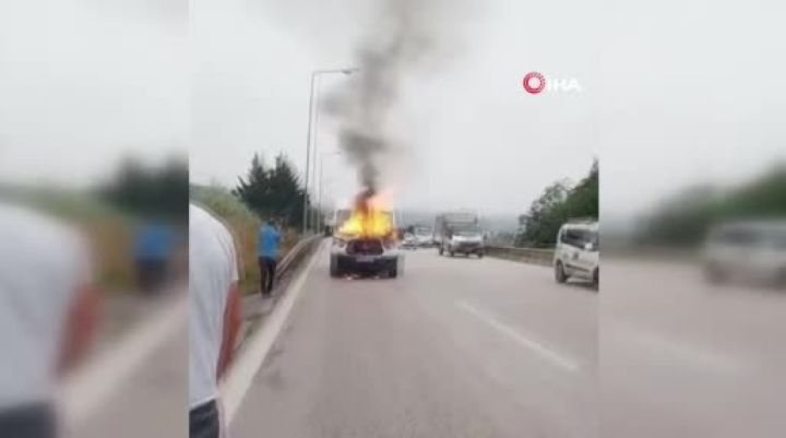 Bursa'da servis minibüsü seyir halindeyken alev aldı. Kontrol altına alınan yangında can kaybı yaşanmazken, araç kullanılamaz hale geldi.