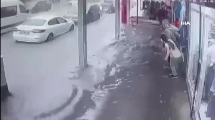 Bursa'da cadde ve sokakları göle çeviren şiddetli yağış esnaflara zor anlar yaşattı. Su baskınlarıyla mücadele eden dükkan sahipleri güvenlik kamerasıyla kaydedildi.