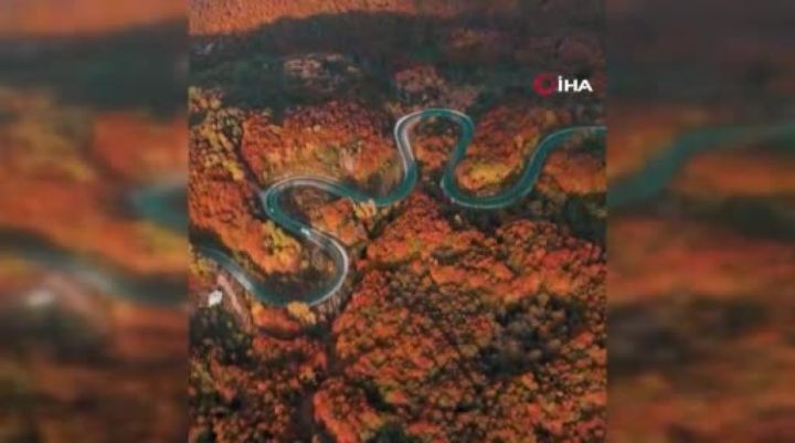 Bursa'nın İnegöl ilçesi ile Kütahya'nın Domaniç ilçesini birbirine bağlayan kıvrımlı orman yolu, sonbaharın gelişiyle birlikte adeta renk cümbüşüne dönüştü. Bu doğal güzellik drone ile havadan görüntülendi.