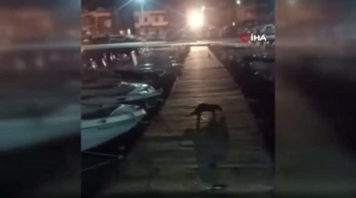 Bursa'da şiddetli fırtına sonrası su samurları ortaya çıktı. İskelede gördüğü kediyi kovalayan su samuru, renkli görüntüler oluşturdu. O anlar anbean amatör kameraya yansıdı.