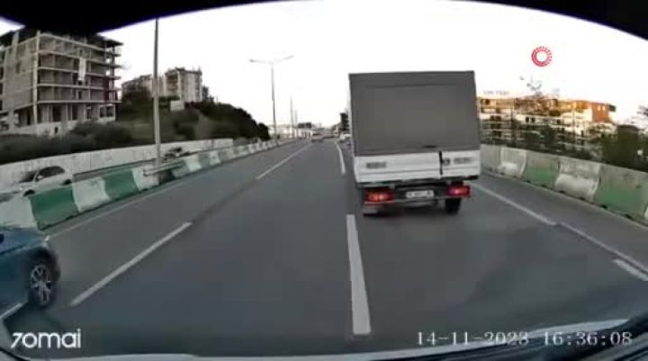 Bursa'da hızla akan trafikte arıza yapan otomobil sol şeritte durdu. Arkadan gelen aracın son anda yaptığı manevra kazayı önlerken, o anlar kameraya kaydedildi.