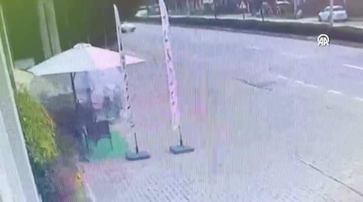 Bursa'nın İnegöl ilçesinde kontrolden çıkan otomobil, refüje çarpıp takla atarak sürüklendi. Kaza anı bir işyerinin güvenlik kamerasına yansıdı.