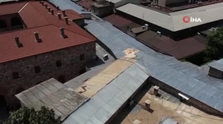 Bursa tarihi Kapalı Çarşı'nın bir bölümünü oluşturan Yorgancılar Çarşısı'nın çatısını kaplayan kurşunların bir kısmı çalındı.