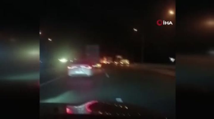 Bursa İstanbul otobanında seyir halindeki bir tır cayır cayır yandı. O anlar anbean amatör kameralara yansıdı.