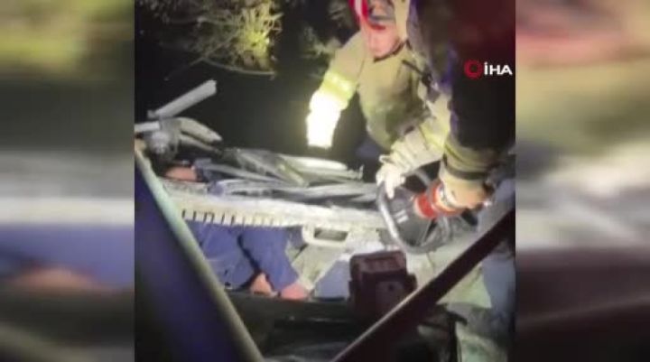 Bursa'da şeker pancarı yüklü tır yokuş aşağı freni patlayınca sürücüsünün kontrolünden çıkıp 2 kişinin bulunduğu otomobile çarptı. 400 metre savrulan tırda sürücü hayatını kaybederken, kağıt gibi ezilen otomobilde bulunan 2 kişinin ağır yaralandığı belirtildi.