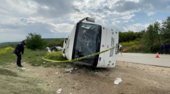 Bursa'nın Nilüfer ilçesinde bir tırla çarpışan servis aracının devrilmesi sonucu 22'si öğrenci 23 kişi yaralandı.