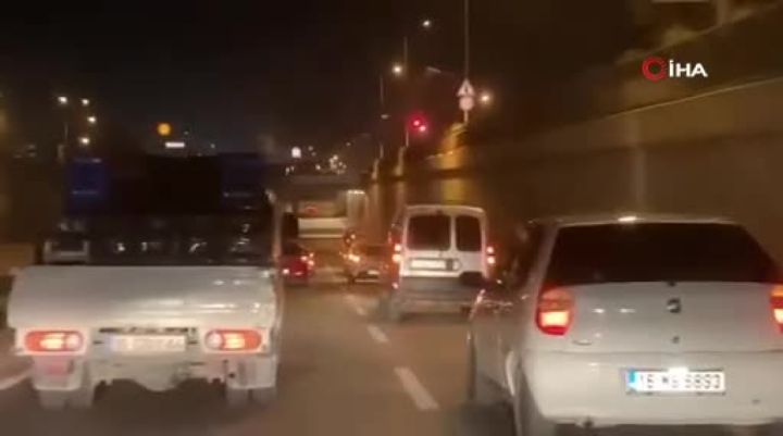 Bursa'da bir düğün konvoyu trafiği tehlikeye soktu. Tünele giren araçlardan bir anda havaya ateş saçmaya başladı.