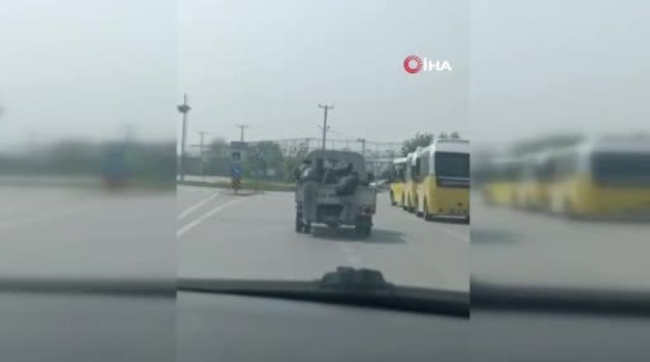 Bursa'da 2 gencin kasalı kamyonet arkasındaki tehlikeli yolculuğu kameraya yansıdı.