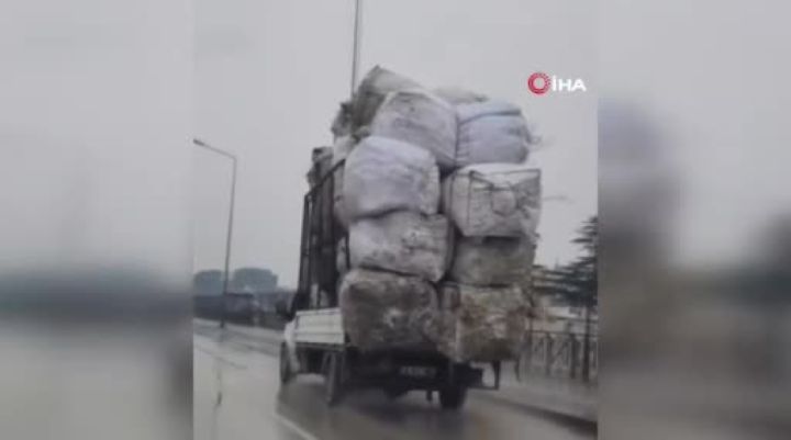 Bursa'da trafikteki tehlikeli taşımacılık başka bir sürücü tarafından kameraya yansıtıldı.
