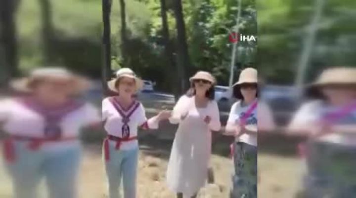 Bursa'nın İznik ilçesine gelen Koreli turistlere Türk rehberler halay çekmeyi öğretti. Ortaya renkli görüntüler çıktı.