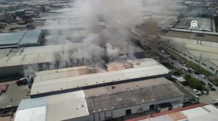 Bursa'nın İnegöl ilçesinde alevlere teslim olan sandalye fabrika dron ile görüntülendi. Olay yerine gelen İnegöl Belediye Başkanı Alper Taban, "Yangın kontrol altında. Can kaybımız yok" diye konuştu.
