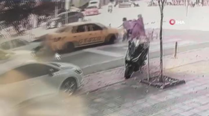Bursa'nın İnegöl ilçesinde yaya anne ve bebeğine yol veren taksiye arkadan gelen otomobil çarptı. Çarpmanın etkisiyle taksi de anne ve bebeğine çarptı. Yaşanan o korku dolu onlar saniye saniye güvenlik kameralarına yansıdı.