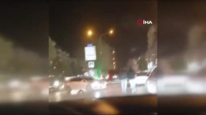 Bursa'da alkolün etkisiyle yol ortasından yürüyen 2 kişiyi kimliği belirsiz kişiler darbetti. O anlar trafikteki vatandaşların cep telefon kamerasına yansıdı.