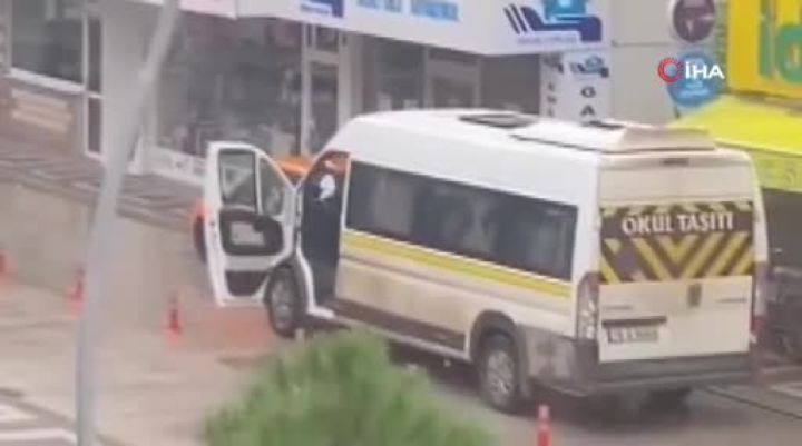 Bursa'nın İnegöl ilçesinde servis aracı sürücüsü ile otomobil sürücüsünün yol verme kavgası amatör kameraya yansıdı.