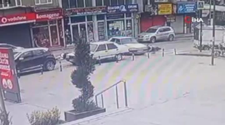 Bursa'da seyir halindeki motosiklet dönüş yapmak için yola çıkan otomobile çarptı. Kazanın etkisiyle havada savrulan motosikletli yaralanırken, kaza anı güvenlik kamerasına yansıdı.