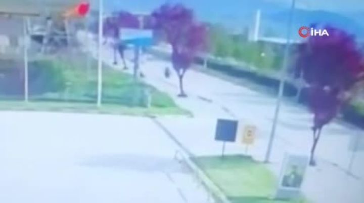 Bursa'nın İnegöl ilçesinde kontrolden çıkarak savrulan otomobilin elektrikli bisiklete çarptığı kazada 1 kişi yaralandı. Kaza anı bir iş yerinin güvenlik kamerasıyla kaydedildi.