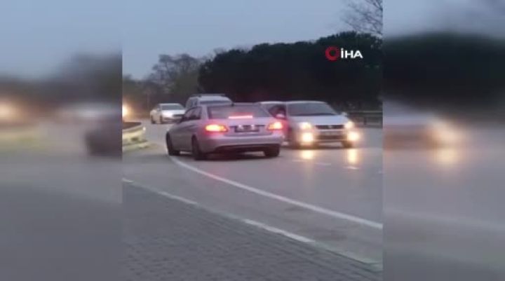 Bursa'da bir otomobil sürücüsü ters yönde seyir etmek istedi. Onlarca otomobilin kaza atlattığı anlar kameralarca kaydedildi.