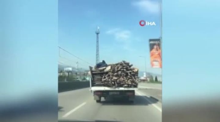 Bursa'da kendi canını hiçe sayarak tahta yüklü kamyonetin arkasına uzanıp giden kişi yürekleri ağza getirdi. O anlar kameralarla kaydedildi.