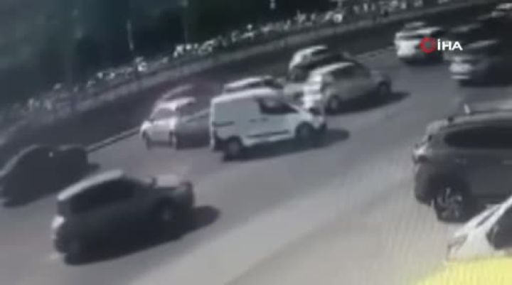 Bursa'da hızla gelen hafif ticari araç, fren yapmasına rağmen aracı durduramayınca önündeki otomobile vurdu. Savrulan otomobil de önündeki iki araca vururken, kaza kameraya kaydedildi.