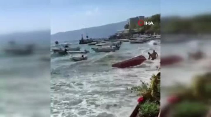 Bursa'nın Gemlik ilçesinde dalgalar sahil yoluna taştı, vatandaşlar korkutan anları kamerayla görüntüledi.