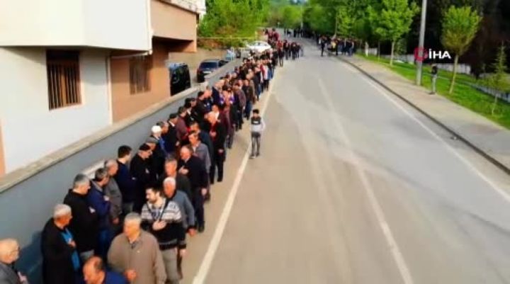 Bursa İnegöl'de Cerrah Mahallesi sakinleri, geleneksel hale gelen toplu bayramlaşma için yaklaşık 1 kilometrelik kuyruk oluşturdu.