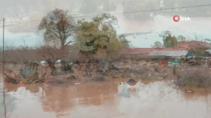 Bursa'da hayatı felç eden sağanak yağış İznik ilçesinde de binlerce dönüm tarım arazisini sular altında bıraktı. Yağışa beraber dereler taştı. İznik Belediyesi ekipleri iş makineleriyle taşan derelere müdahale etti. O anlar havadan görüntülendi.