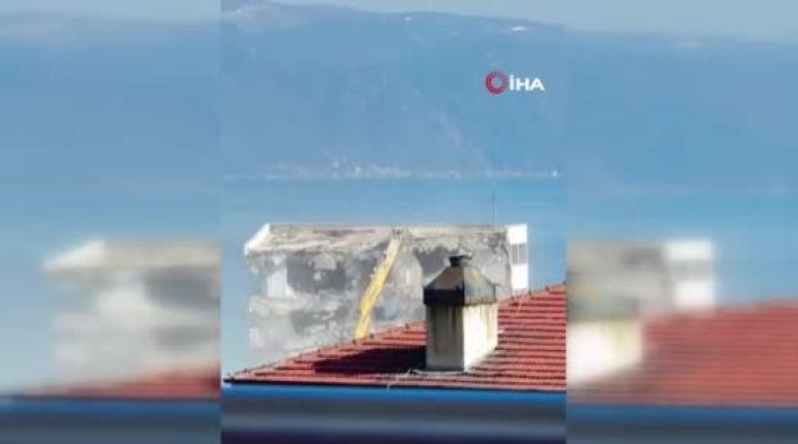 Bursa'nın Mudanya ilçesinde 11 katlı binanın kentsel döşümün çerçevesinde yıkımı gerçekleşti. İş merkezi ve konut olarak kullanılan bina, iş makinesinin tek darbesiyle yerle bir olduğu anlar cep telefonu kamerasına yansıdı.