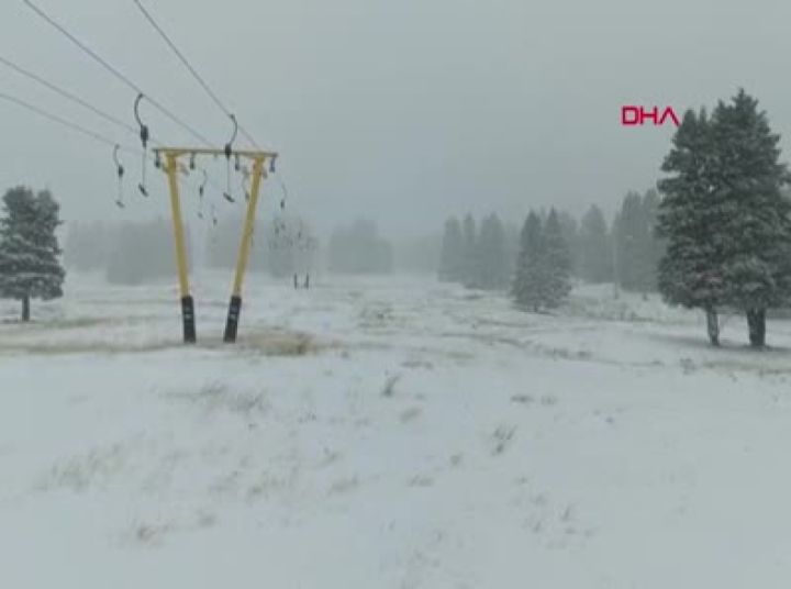 Gece saatlerinde başlayan yağışla Uludağ beyaza büründü.
