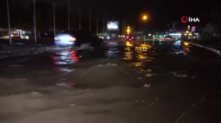 Bursa'nın merkez ilçelerinde etkili olan yağıştan dolayı rögarlar taştı, caddeler göl oldu.