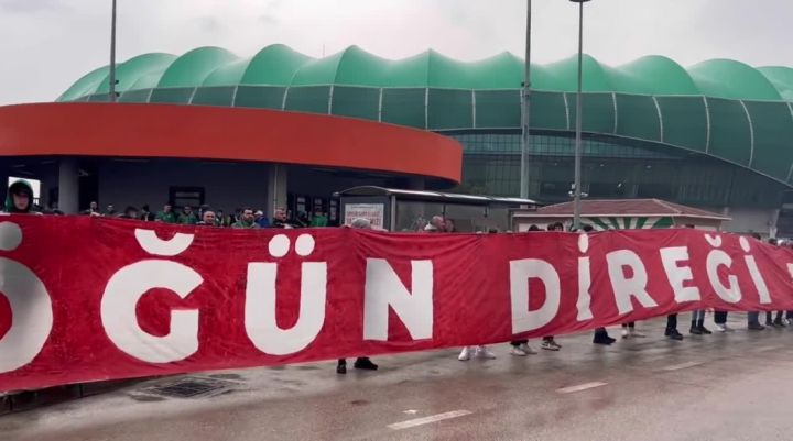 Bursaspor bugün Amedspor'u konuk ediyor. Maç öncesi stadın önünde toplanan Bursaspor'un taraftar grubu Teksas, "Göğün direği alınana dek ay-yıldız hüküm sürecek" yazılı pankart açtı.