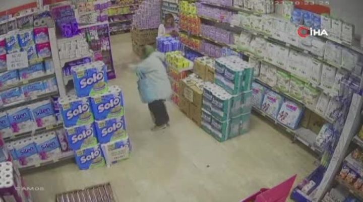 Denizli'de alışveriş yapmak için markete giren kadın, sevdiği müziğin çalındığını duyunca reyonların arasını sahneye çevirdi. Çalışanın gözleri önünde ceketini çıkarıp bale yapmaya başlayan yaşlı kadın, ayaklarını yere paralel açarak şovunu bitirdi.