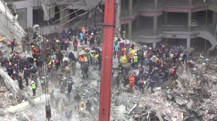 Merkez üssü Kahramanmaraş'ın Pazarcık ilçesi olan ve 10 ili etkileyen 7,7 büyüklüğündeki depremde Diyarbakır'da yıkılan binalarda arama kurtarma çalışmaları sürüyor.