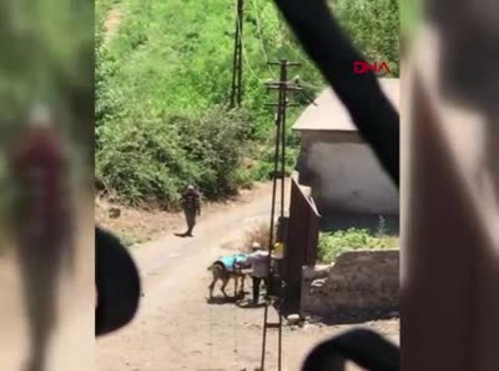 Diyarbakır'ın Sur ilçesinde bir evin kapısına bağlı eşeğe uygulanan şiddet, cep telefonu kamerası ile görüntülendi.