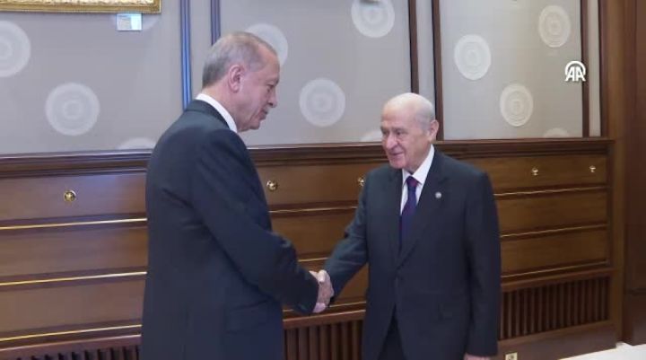 Cumhurbaşkanı Recep Tayyip Erdoğan, Beştepe'de MHP lideri Devlet Bahçeli'yi kabul etti. Görüşmenin ağırlıklı gündem maddelerinin NATO ve ekonomi olduğu belirtildi.