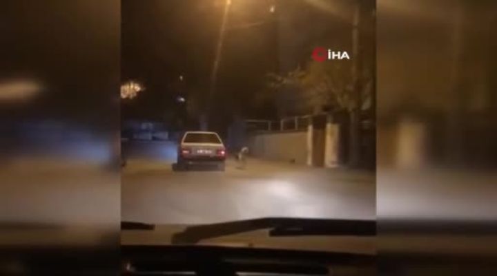 Karabük'te bir şahıs, otomobilin sağ ön kapısına bağladığı köpeği sokakta koşturdu. O anlar cep telefonu kamerasına yansıdı.