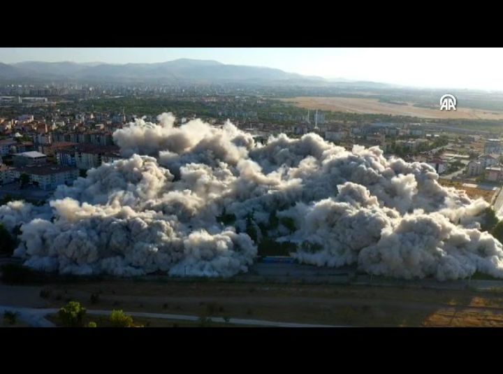 6 Şubat'taki Kahramanmaraş merkezli depremlerde büyük yıkıma uğrayan Malatya'da, 15 katlı 9 bina aynı anda patlayıcıyla yıkıldı.