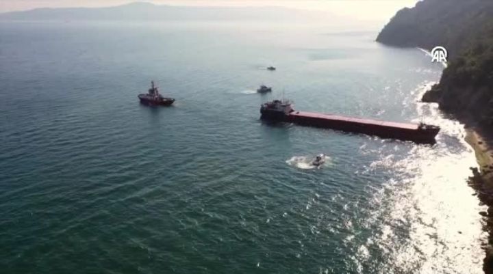 Bursa'nın Mudanya ilçesinde karaya oturan kargo gemisi, Kıyı Emniyeti Genel Müdürlüğünün (KEGM) römorkörüyle kurtarıldı.