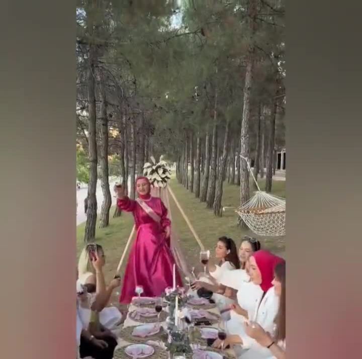 Sosyal medyanın gündemine düşen görüntülerde, bekarlığa veda partisi için buluşan gelin adayı ve arkadaşları ellerindeki alkolsüz şampanya ile dikkat çeken bir parti yaptılar.