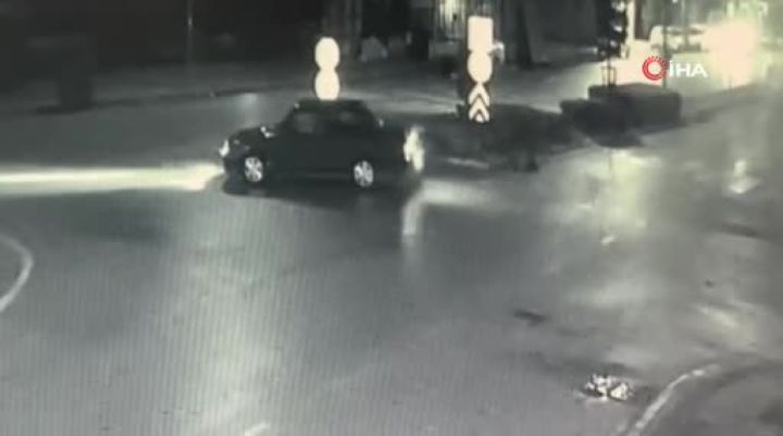 Bursa'nın İnegöl ilçesinde otomobilin motosiklete çarptığı kaza bir işyerinin güvenlik kamerasına yansıdı.